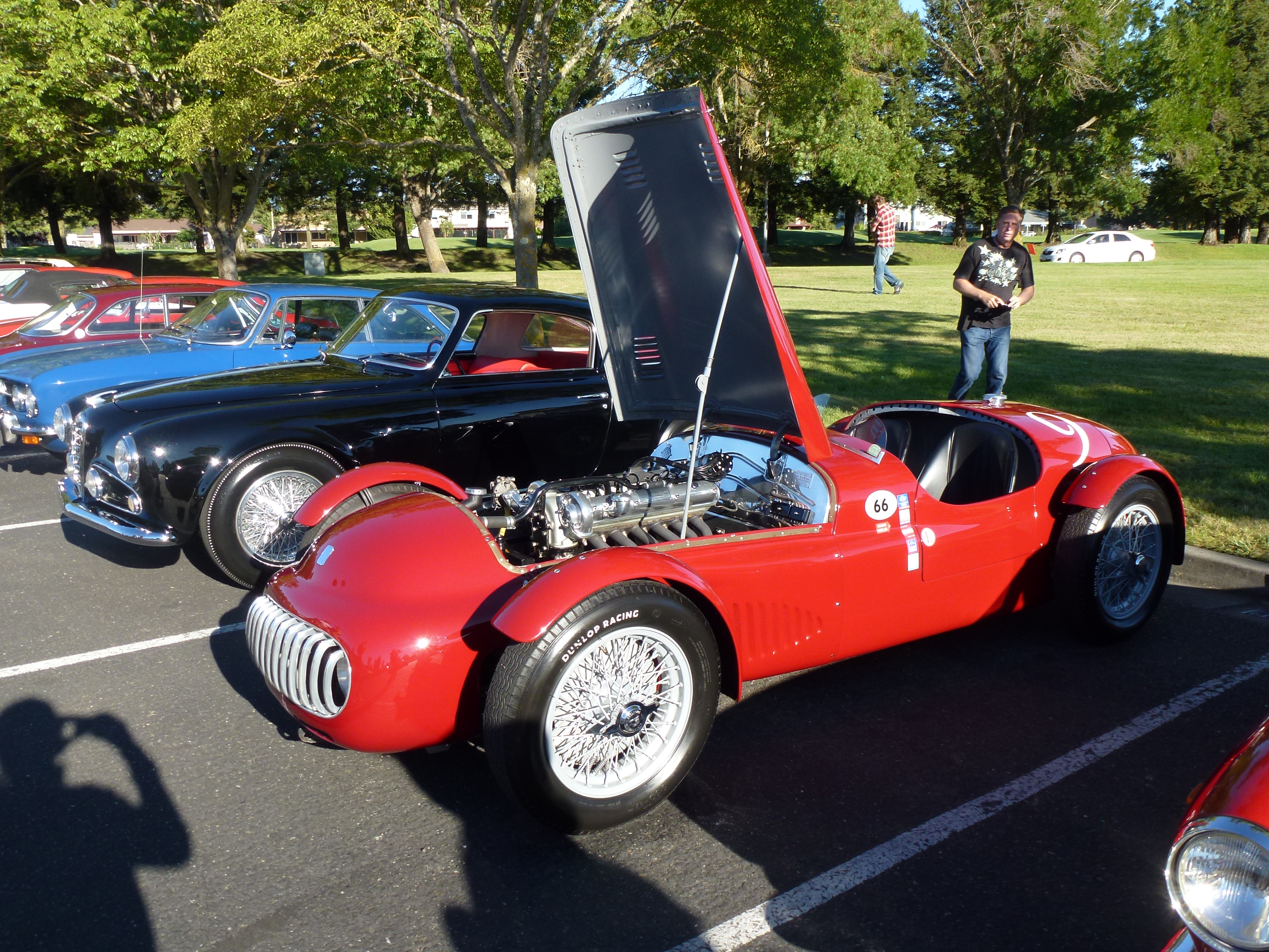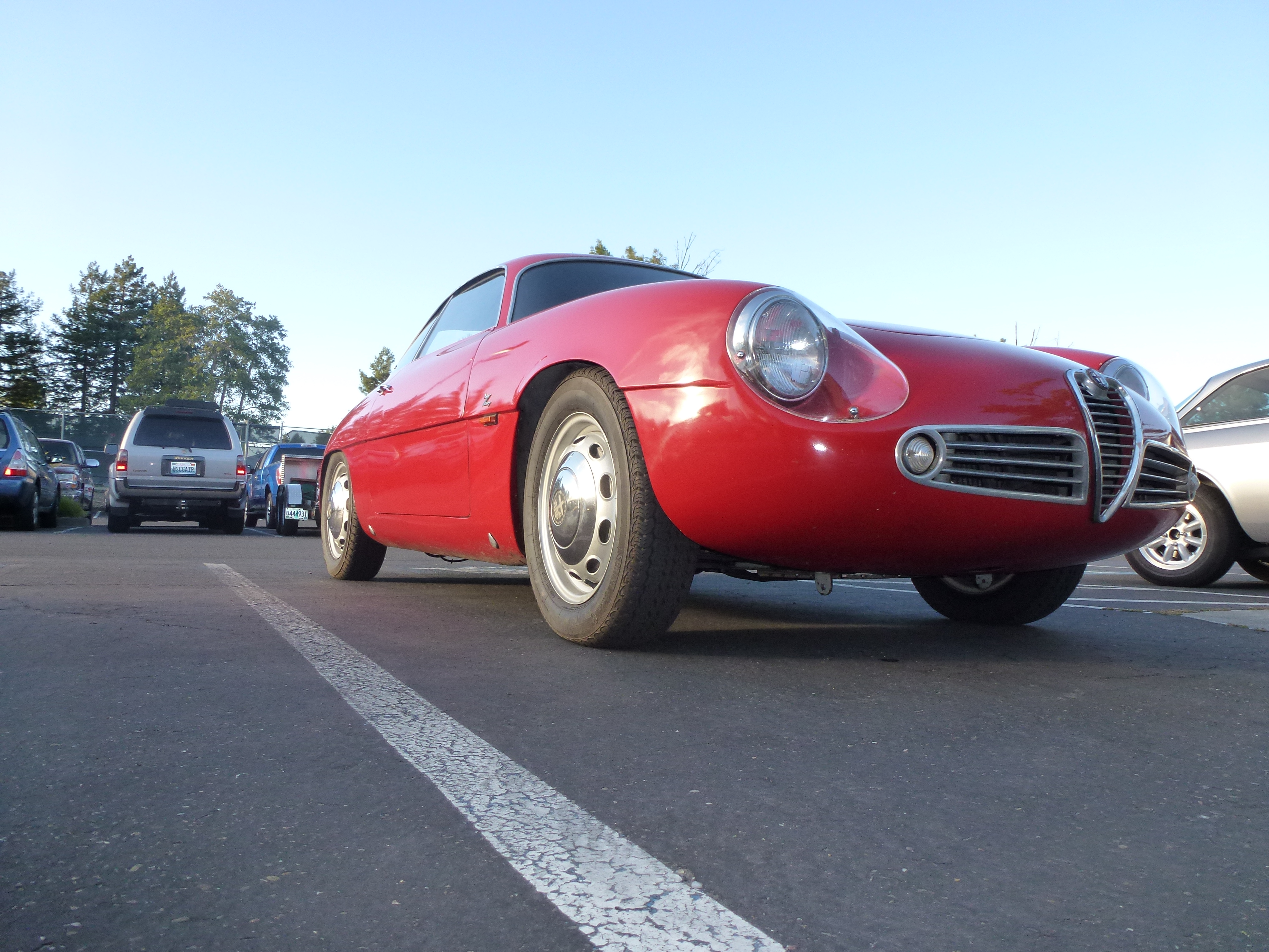 Mostly RustyButTrusty is not a car show site – there are plenty of other sites where you can find pictures of shiny cars. However, for this case I’ll make an exception, mostly to drive the point home that you can amazingly *still* afford cars related to some of the shiny ones in this post, some of them so closely related that they have nearly the same engine and suspension. A prime example of this is this row of 4 Alfa Romeo Giulietta and Giulia Sprint Speciales – the number 81 car raced at Sebring back in the early 1960s. Not only that, the owner had driven it down from British Columbia with his wife and was doing the high performance driving school, time trials, and the concorso!