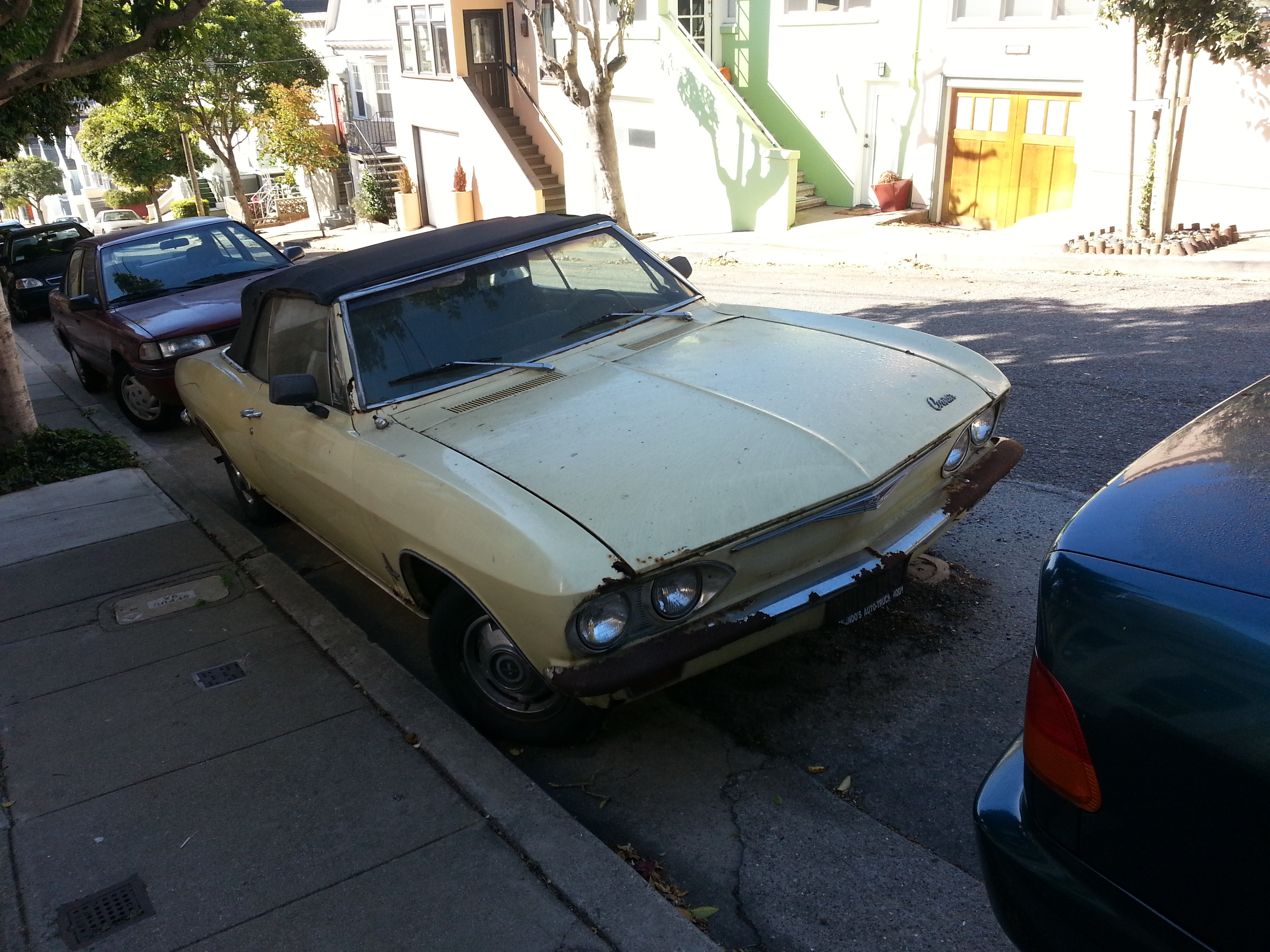 This second-generation Corvair is the rare (maybe not-so-rare, depending on where you’re from) Crispy Edition. Mysterious rust in the a-pillars means you better not flip it. Pale yellow looks great on 1960s sports cars, and the convertible top means that if Corvairs ever achieve significant collector value, this 110 will stand a better chance of being restored than any hardtop.