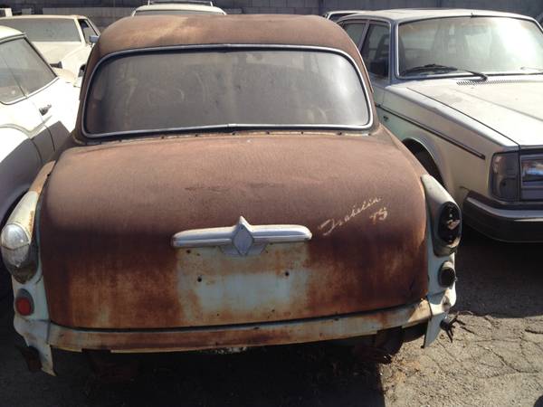 Some makes and models of older cars are so obscure that the most common way to find them is as a sun-baked hulk in someone’s yard. Such is often the case with Borgward, a Bremen, Germany-based manufacturer of upper-middle-class luxury cars that slotted in the gap between Mercedes and VW/Opel. With a top speed of over 80mph, 4-wheel independent suspension, a hydraulic clutch, and more competitive features, it was quite a nice car in its day, and fairly successful with production of just over 200,000 cars. Unfortunately, the parent company failed to take advantage of economies of scale across its four divisions (Borgward, Hansa, Goliath, and Lloyd), and thanks to this and a slump in demand at home and abroad, went bankrupt in 1961. The current seller of this Borgward Isabella coupe, for sale for $900 in East Los Angeles, CA, will probably also not be clearing a profit on his car.