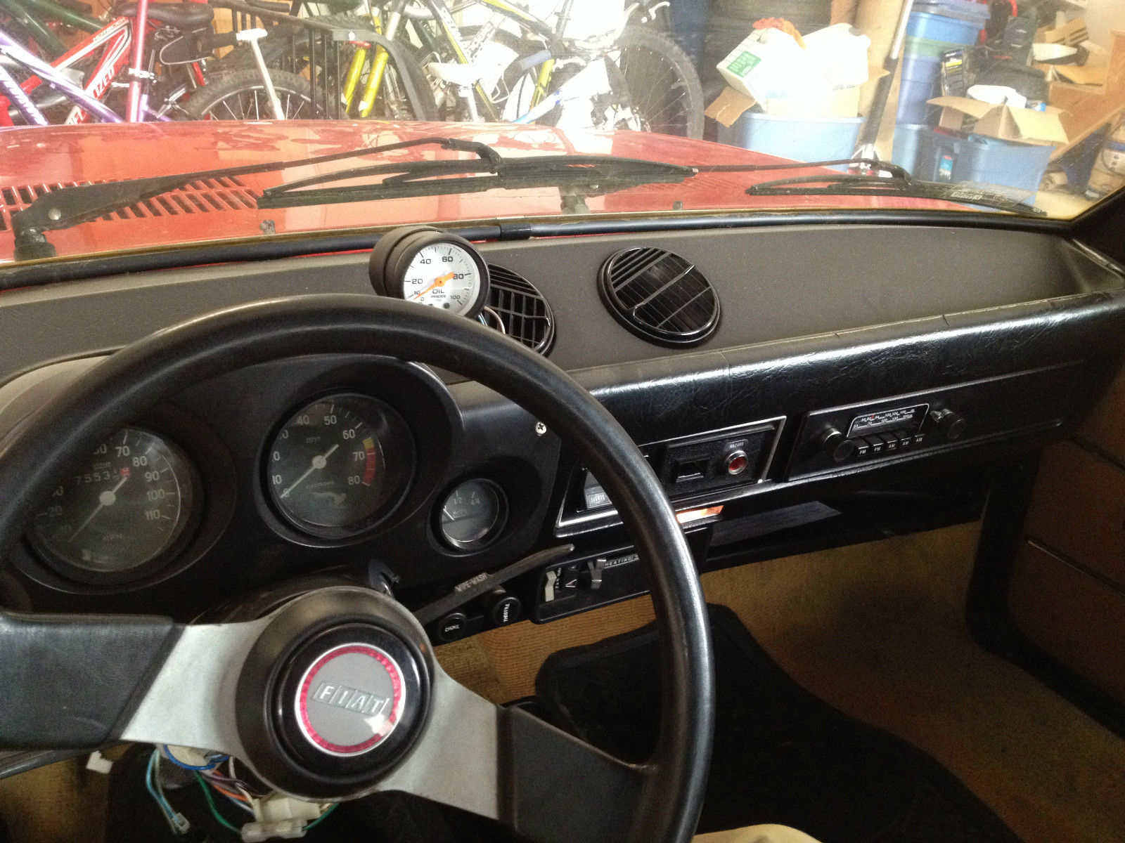 And here it is – the Lampredi Fiat 128 SOHC engine, with quad Keihin motorcycle carbs to get the fuel in there. It’s not clear why the seller specifies they’re Italian Keihins, as Keihin is a Japanese company – perhaps these are original specification for a Ducati or Aprilia? Hopefully they maintain their tune well, as synching four of these little guys is probably a right kerfuffle. But it must sound amazing at full thrust, and the seller says the car pulls really well. With only about 75,000 miles on the car, it is not said to be rebuilt, yet does not smoke or leak oil. If you do decide to take the plunge, get ready to talk to everyone you see about this little attention-getting jewel.