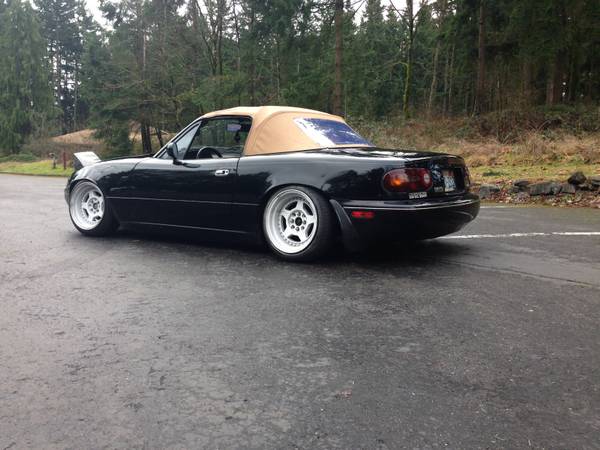 Since they got first place on the Sports and Exotic Car list, and today seems to be double (or quadruple) feature day, here’s a pair of winners, at least in terms of quantity sold. Though scorned by many car nuts, and many sports car nuts, there’s a lot to be said for the Miata, both in terms of the revolution it started and its ability to be something to many people. You can pick up a new, relatively powerful Miata for up to $30K-ish, or a simple, light drive-a-slow-car-fast first-generation Miata for as little as a few hundred bucks. And in between, there are all kinds of permutations, stock, hot-rodded by owners, Spec Miatas, and factory hot rods. If you don’t want to spend a lot for a roadster and want a car that will last around 200,000 miles well-maintained, you really can’t go wrong with one. So yes, trusty for sure, and if you buy a snow-state Miata, you can have some rust too. For this episode, we’re focusing on a couple of owner-modified cars. You can find our first one, this 1992 Mazda Miata turbo, for sale for $3500 in Tacoma, WA.
