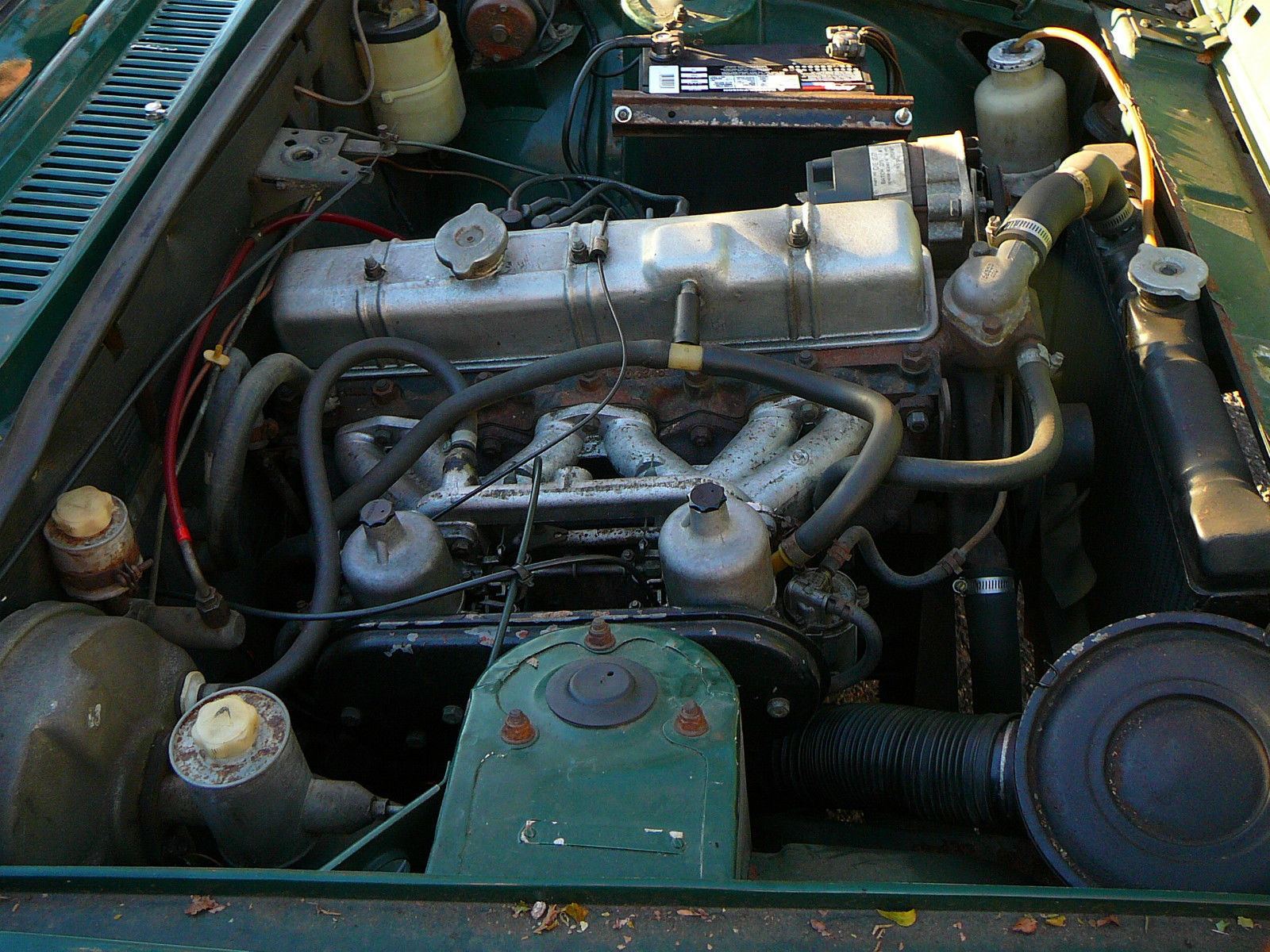 What a smart looking sedan – replace those homely hubcaps, and all of a sudden this car is no less attractive than, say, a contemporary Mercedes or BMW. Michelotti did a number on the Mark II just as he did on other Triumphs, and it’s quite successful. The car is said to have been brought from Scotland or Switzerland (what? put your money on Scotland for this RHD car), and is said to be in great running, driving condition. However, as you can see, it also has a fair amount of rocker/fender rust, so will need some investment.