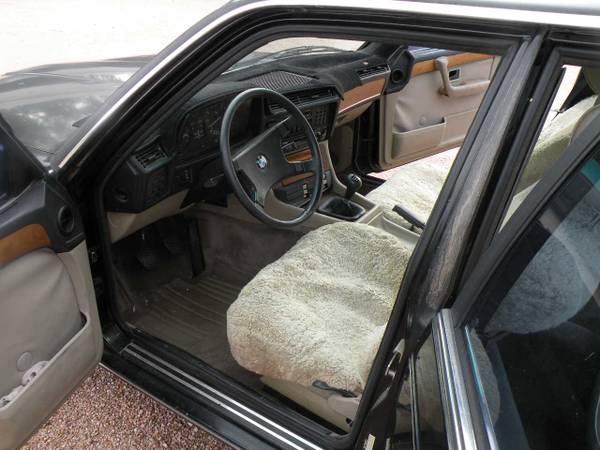 There’s some oxidation visible on the plastic bumper “fairings”, and the car is equipped with not-so-attractive wheels from a later E32 or E34 BMW, but those issues are relatively easy to rectify. Outside of that, this appears to be a well-kept older car, and is said to run well.