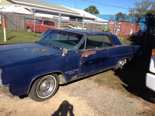 If you like the styling of post-war European cars, you definitely owe it to yourself to take a closer look at American cars of the 1960s. Their simple, clean styling is very mid-century modern, in stark contrast to the garish designs of the 1950s and many of the dated and/or cliched designs of the 1970s. Among the design icons of that period, people might quickly come up with a list including the Lincoln Continental, Buick Riviera, and Oldsmobile Toronado (and get angry with you for leaving out the Mustang and the Impala, which, while successful cars in their own right, were not design icons). In that shortlist, however, they’d be forgetting Pontiac’s Grand Prix, which had equal measures of innovation and style. Check out this 1964 Pontiac Grand Prix, for sale for $3000 in Jay, FL (just north of Pensacola).