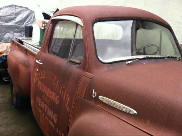 Among classic car selectors, there’s a suwb-segment of folks who go absolutely crazy for surface rust, handpainted signage, or a combination of the two. And to tell the truth, there is something pretty cool about seeing the history of the truck painted right on the door – it just helps you picture a time when all the working trucks wore handpainted signs on the doors, along with a exchange-style phone number and perhaps the name of a trade that has become obsolete, like, say, radio repair. These trucks are still not terribly rare in rural areas, and we’ve got one for you today. Check out this 1955 Studebaker 1/2 ton pickup, for sale for $2750 in Petaluma, CA.