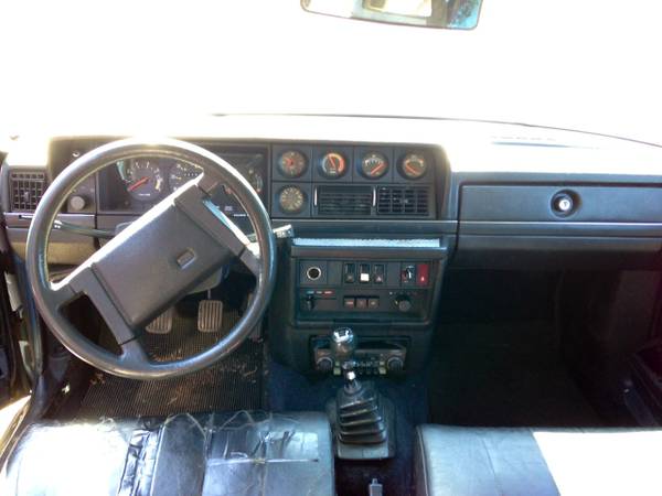 And here you can see some of the interior damage. There is also splitting in the rear seat, so you can count on a full reupholstering job, or if you’re lucky, you can find some replacement seats from another car. Some period Recaros would look pretty cool, but Volvo’s stock seats are so darn comfortable it would be hard to justify replacing them. The seller speaks of interior wear in a general sense, so you might want to count on replacing other things like the carpet too. The comprehensive set of gauges is pretty neat, and includes a clock, ambient temperature thermometer, oil pressure gauge, ammeter, and most satisfying of all, a boost pressure gauge.
