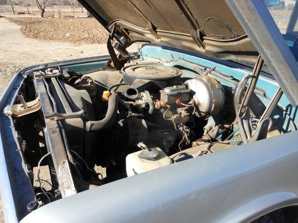 The interior looks to be in decent shape, though the seats are covered by Mexican-blanket style seat covers. Is it to cover damage, protect legs on hot days, or both? Either way, at the price you really can’t complain. It’s neat to see a third pedal and a four-speed shift lever on the tunnel. The truck is said to have been redone in the 1990s, and to need some refinishing – original spec wheels and hubcaps would look good on this, but other than that, there’s not much to change for looks.