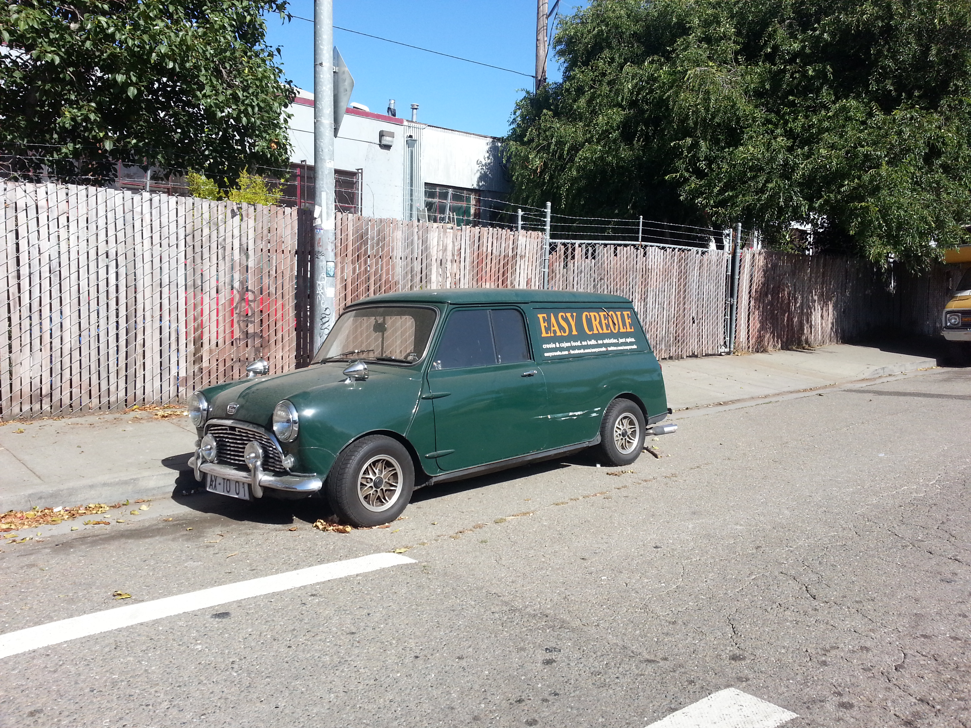 Next up is an Austin Mini van, seemingly an early version with sliding windows and exterior door hinges. This belongs to a nearby restaurant, though it’s not clear what it’s being used for – perhaps catering deliveries? Dark green paint and Cosmic wheels make for a pretty cool look combined with the signage, and the car seems to be wearing Spanish plates. It’s been sitting in this location for several weeks, so perhaps the owner has lost interest and there’s an opportunity to pick up an interesting car at a reasonable price?