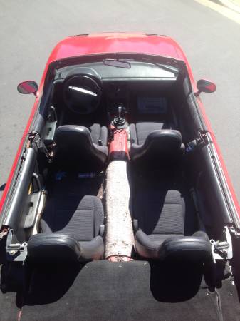 Some say that Mazda’s Miata is the perfect modern interpretation of the classic sports car. But with the Miata going on 25 years, and the 4th generation just unveiled, there are plenty of old beater Miatas out there, which means they’re a great creative canvas. They’ve been used for Lemons racing, converted to different powertrains, converted to look like other cars, and just made into things that are plain weird, like station wagons. With all the limo services in the US, you’d think a few would have been converted into stretch limos, but as it turns out a roadster does not really lend itself to convertible conversion. So if you want one, the pickings are slim, but this 1993 Mazda Miata stretch is for sale for $3400 in San Diego, CA.