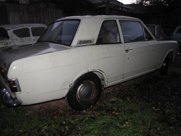 The only car that seems truly stereotyped for multiple ownership in a crazy cat lady kind of way is the Corvair. With most other car hoarders, it usually seems to be a mixed make field of broken dreams of various makes of car in disrepair. But what if you took those wacky Corvair-hoarding tendencies and applied them to something way harder to find? Wouldn’t that naturally limit the amount of cars you could accumulate? Well, not if you’re this guy and your poison is English Fords – his hoarding superpowers mean he has an entire backyard full of Cortinas and Anglias, some of which he’s now offering for sale. Let’s take a look at a couple of the most appealing offerings, starting with this 1968 Ford Cortina 4-door for sale for $1500 in Oakland, CA.