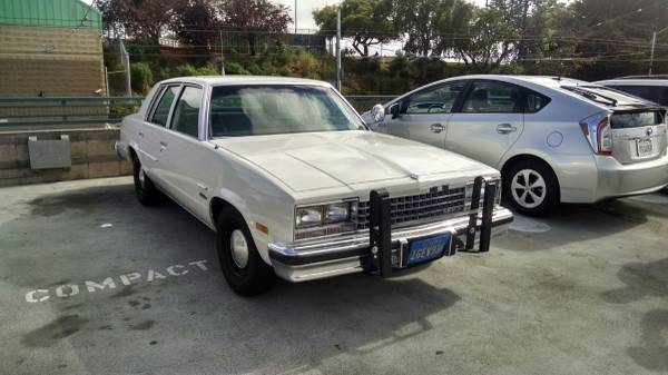 With the widespread availability of used P71 Ford Crown Victorias, it seems like having a retired police car is not so cool anymore.. at least, cool in the sense of being unusual. So it’s a fun surprise to find an older semi-plainclothes patrol car, even if it does mean putting up with a wheezing smog-era GM V6. Replacing the Nova police package in 1979, the 9C1 option did not include any kind of power upgrade t othe engine, but smaller cars like this were more commonly used in urban areas, where maneuverability and fuel economy were prized over top speed. Check out this 1983 Chevrolet Malibu 9C1 for sale for $3000 in San Francisco, CA.