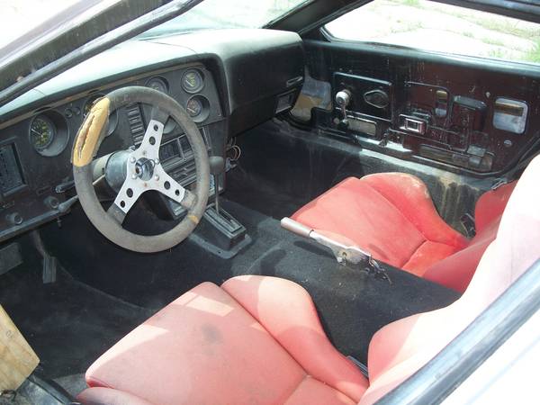 The non-original silver-on-black color scheme makes it look like it’s pretending to be a DeLorean. Though labeled as a safety car, Bricklins were criticized by the press for not actually having much passive safety in the way of padding, etc. to protect passengers, as well as large A and B pillars, which compromised visibility. The large safety car bumpers sustained no damage up to 12mph, but that really helped the insurance companies more than the car’s owners. This particular car looks to be in straight condition, but the mismatched paint and odd bra on the front, along with the cheap NASCAR-look wheels, take away from the overall impression. On the bright side, contemporary wheels really help modernize the look of the car from the OEM turbine-style wheels.