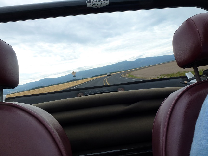 No visit to Eugene is complete without a stop by the Sports Car Shop, which had a few interesting old cars and motorcycles in the window. And once again, we were chatted up by a characterful, shirtless Iggy-Pop-looking local, singing to himself while pushing his shopping cart along, who was very supportive of the idea of a roadtrip in a set of old cars (is that good or bad?). For the second leg, we had some time to split off the arrow-straight I5 and take Peoria Road to the 99W – not too curvy, but much more scenic and with fewer big rigs. Nice when you’re the only thing on the road and can set your own pace, even if you don’t know what that pace is since your speedometer decided to take a nap for the entire trip up.