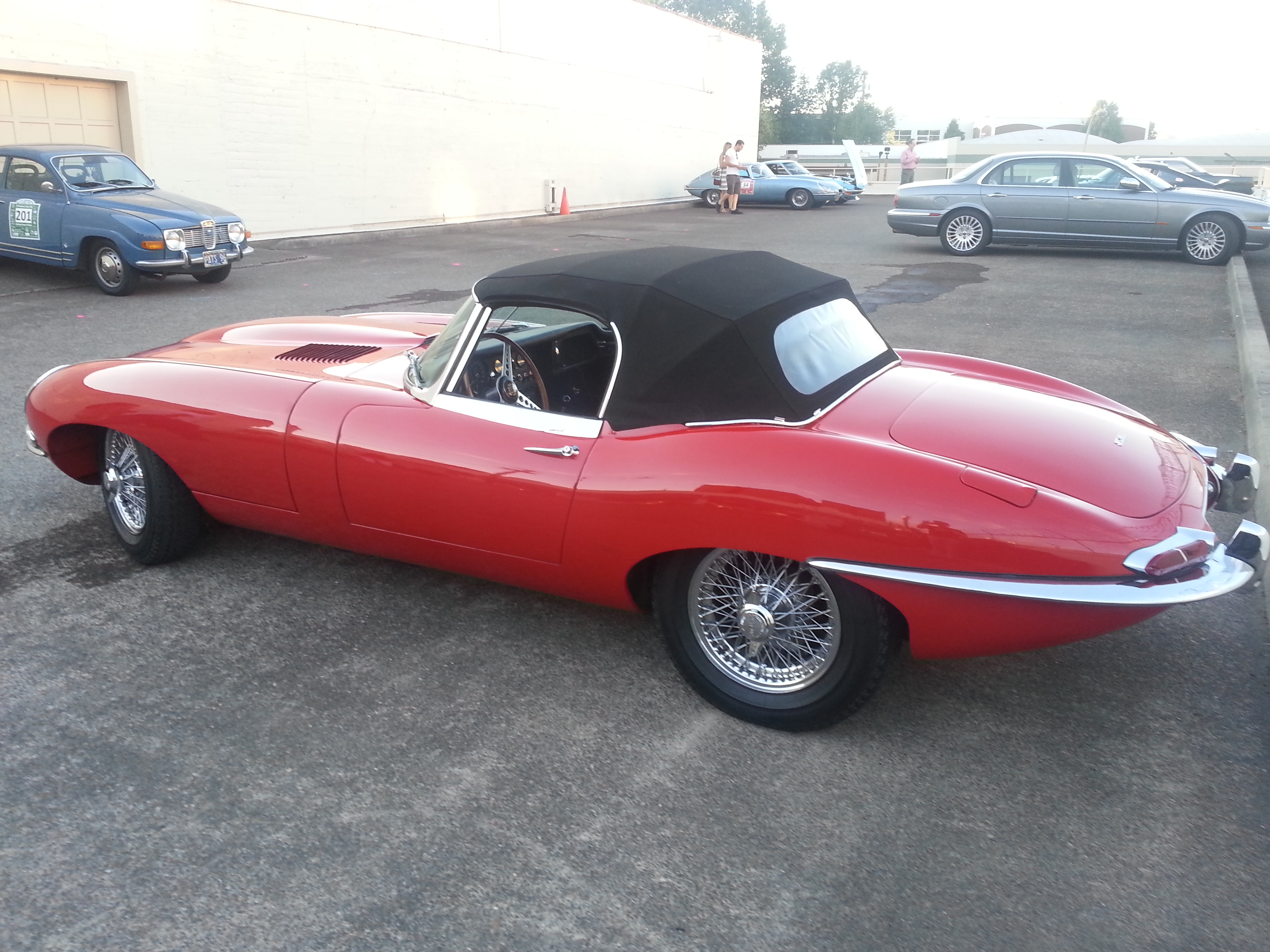 This red Jaguar E-Type was at the send-off for the Monte Shelton rally in Portland. Sadly, this is another one-time dream car that has slipped out of reach – even the 2+2 cars are slipping away. The red ones have special meaning since your writer’s father picked one up from the factory in 1965.
