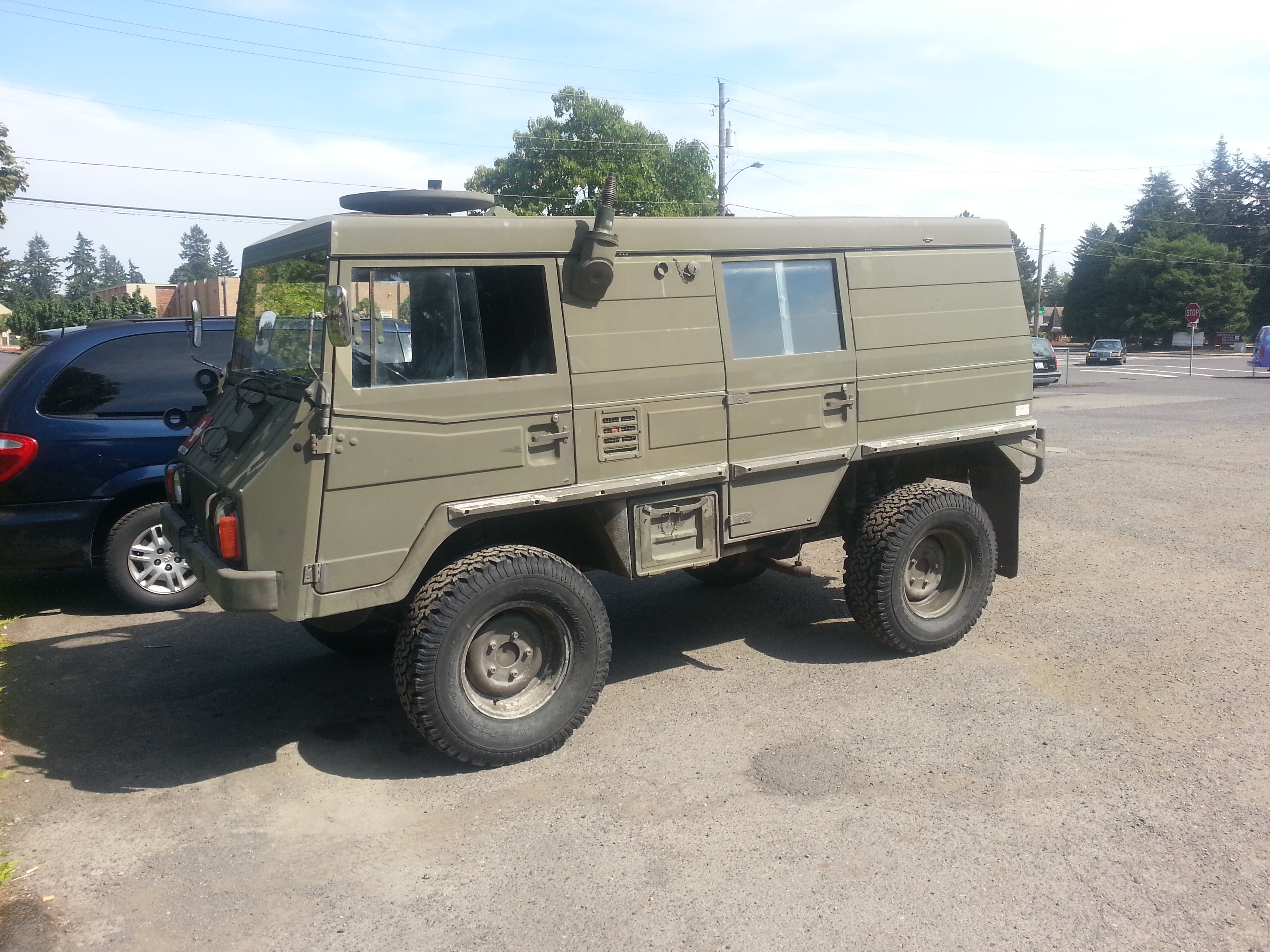Here’s a Pinzgauer, spotted in lovely Vancouver, WA. This one looks like it’s primarily used on the road based on its tires, it can probably still go much further than most other vehicles. And with that satellite dish on the roof, this former military ambulance is probably set up for camping/fishing duty.