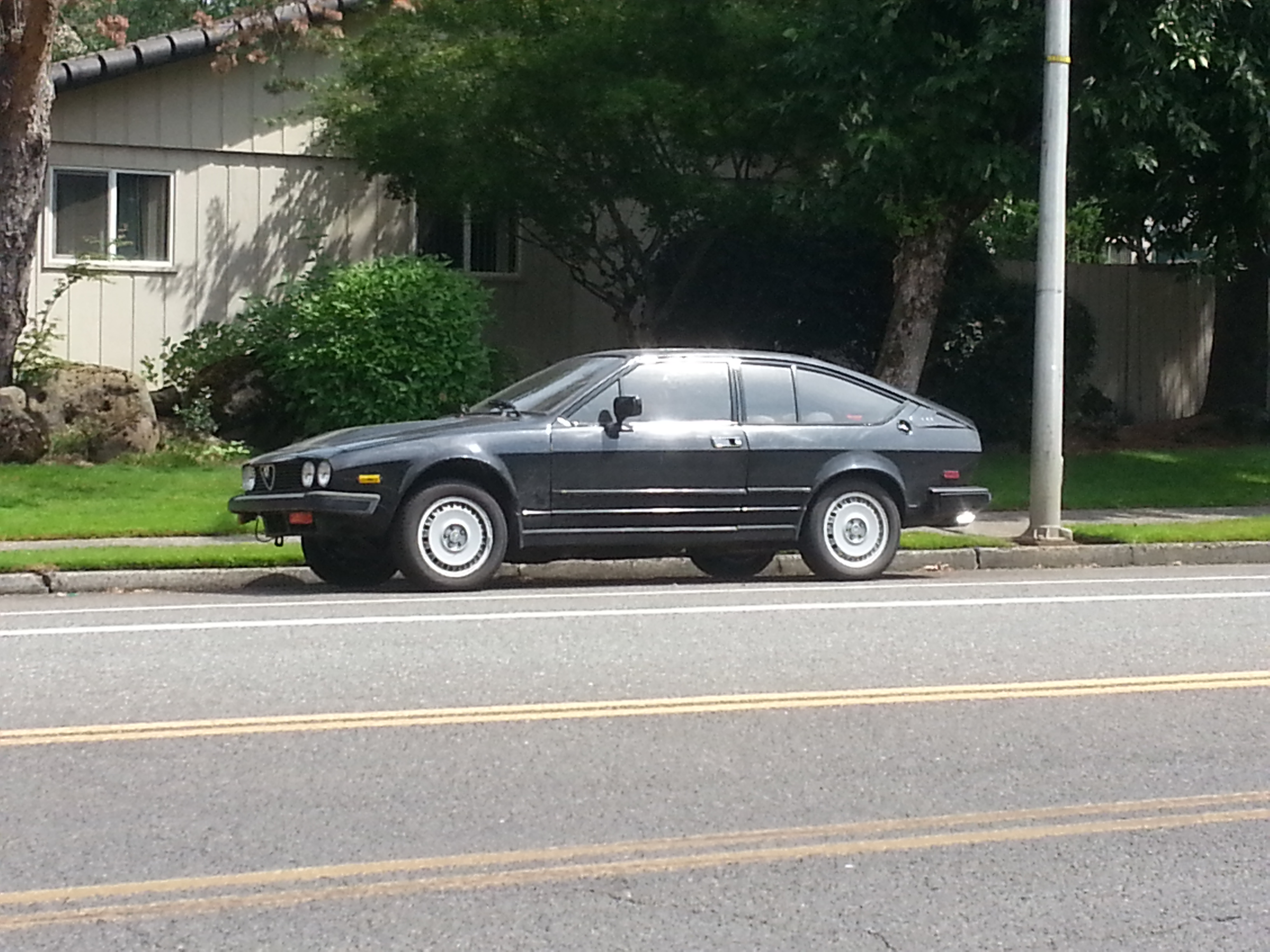 This Alfa Romeo GTV6 is visible from a local freeway, and seems to be in decent cosmetic shape, but spends long periods sitting – probably not the best thing for the car’s long-run mechanical survival, so perhaps the seller is procrastinating on a timing belt change or similar. Odds are good this is the only GTV6 in all of Vancouver, WA.