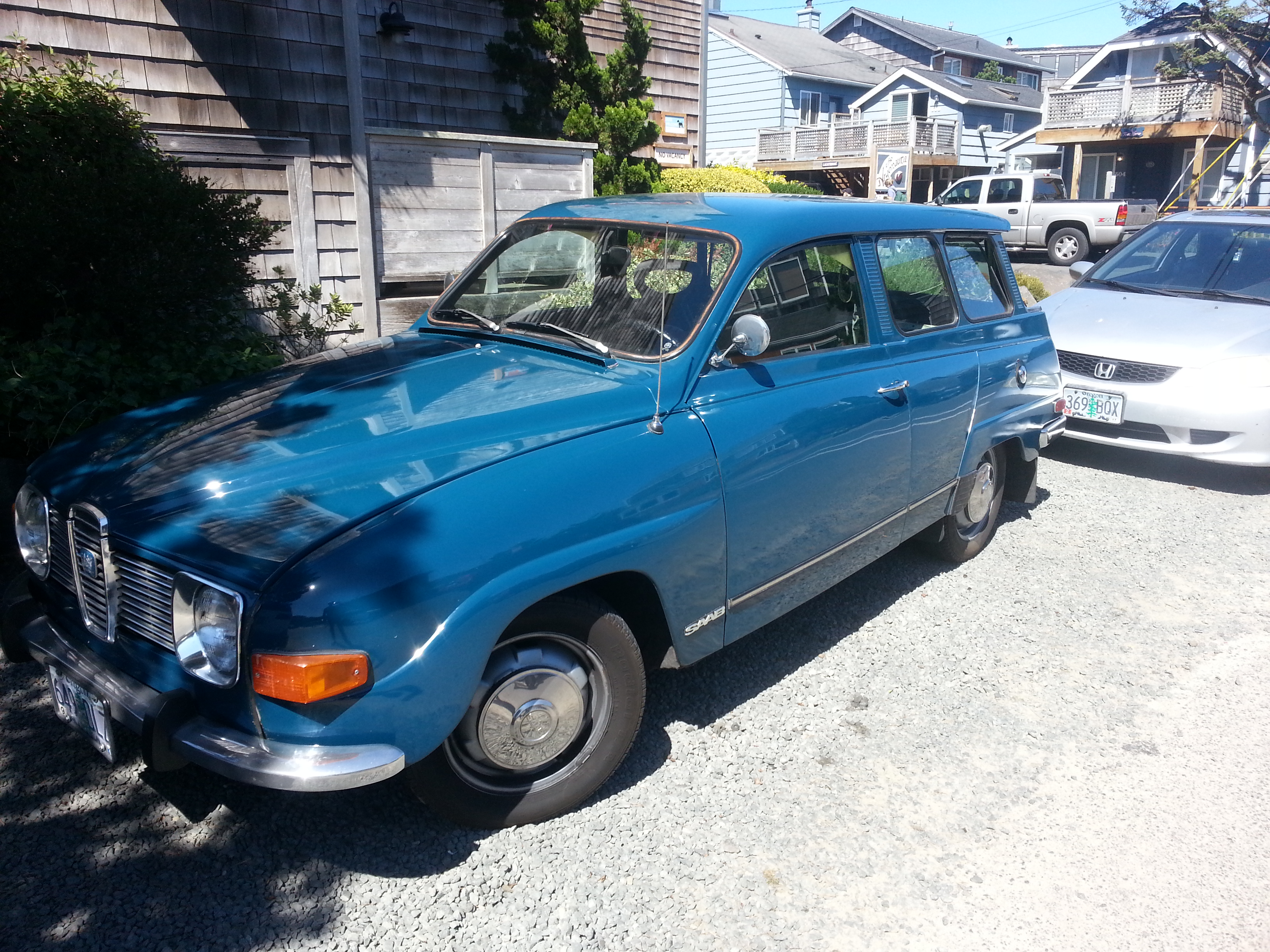 Look at this gorgeous Saab 95 wagon, spotted in Cannon Beach, OR. This blue is an unusual color for these that works really well. Do you know a smaller wagon that seats seven? Just as importantly, does the average Swedish family have five kids and no luggage?