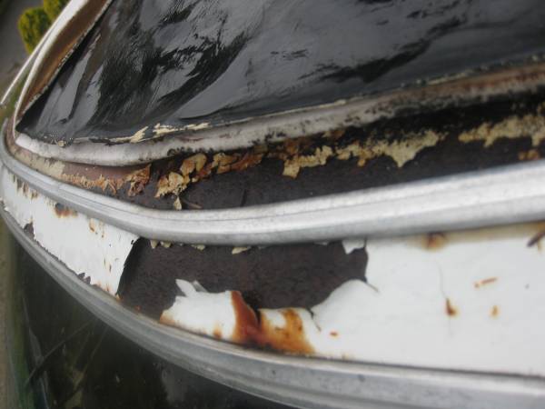 And here’s the roof. It start here, and this is probably above the windshield, showing vinyl behind it. You’ve got your work cut out for you, if you have the bodywork chops to take this on!