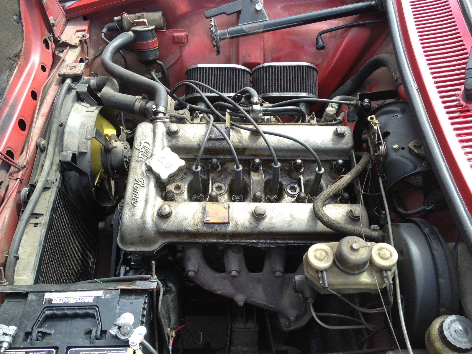 The engine compartment has a bit of an oil film, and the hood insulation has seen better days, but overall, things look pretty decent. The windshield washer bottle is missing, which is crucial if you’ll be driving in poor weather, but an important thing to note is the fully intact, apparently rust-free inner fenders. K&N filters will make a nice sucking sound on acceleration, even with the original SPICA, and even if they contribute to a small loss in power. Interestingly, this early car has the battery mounted underhood, but still has the rear battery compartment in the trunk floor.