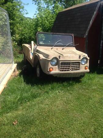 June 10, 2014Continuing the discussion from a couple of weeks back about what makes a great RustyButTrusty car, we should also consider that what a car is missing can mean just as much as what it has. No b-pillars? Check! Fewer than 4 wheels? Check! Fewer than 4 cylinders? Check! No b-pillars, c-pillars, windows, roof, doors, or carpet, and only 2 cylinders? Overload! Check out this 1970 Citroen Mehari for sale for $2500 in Dayton, VA.