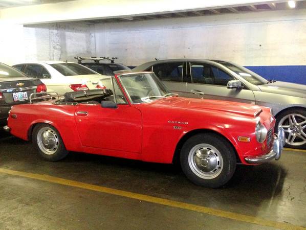July 6, 2015In summer, the classic car market blossoms and people are reminded, either by new acquisitions or just the good weather, that they really should get around to selling that old thing in the driveway. Of course, sunny weather is also a good time to sell a roadster since it’s the time when you want to drive with the top down, although with near-100-degree temperatures in western Oregon right now, that may be a stretch, and your modern car with air conditioning and cloth seats doesn’t look so bad. Either way, it does keep the cars dry, and perhaps you’ll want to wait out the hot temperatures by fixing up the interior of today’s feature. Check out this 1969 Datsun 1600 Roadster for sale for $3000 in Medford, OR.