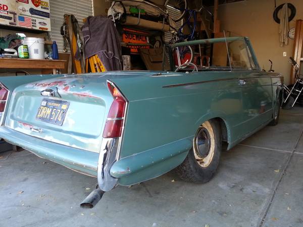 March 17, 2014Through the years, various companies have turned to Italian stylists when they were looking to broaden their appeal or increase their sales volume. Nearly every nationality that manufactures cars has done it – Japanese, Korean, German, French, British, Swedish. Oh, and the Italians themselves, because nobody goes to the land of the 5-series GT and says “design me something beautiful”. While they were hardly the first to do it, Triumph started a long-lived and fruitful relationship with Giovanni Michelotti by awarding him the contract to design their inexpensive family sedan, the Herald. Most were used up and thrown away, but you can find this 1962 Triumph Herald saloon for sale for $3800 in the Brentwood/Oakley area, CA.