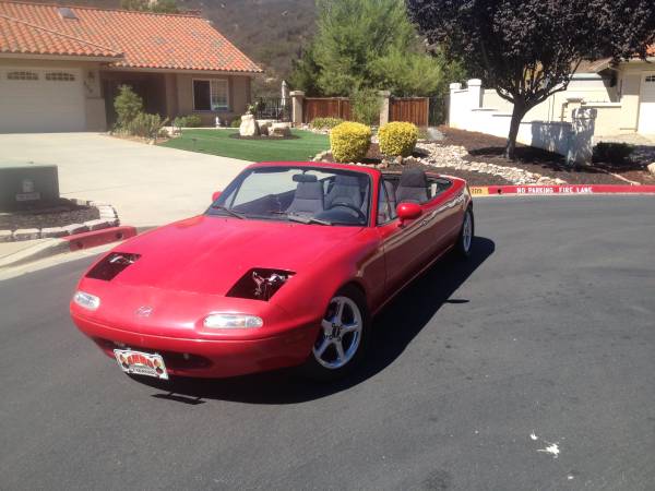 January 31, 2014Since they got first place on the Sports and Exotic Car list, and today seems to be double (or quadruple) feature day, here’s a pair of winners, at least in terms of quantity sold. Though scorned by many car nuts, and many sports car nuts, there’s a lot to be said for the Miata, both in terms of the revolution it started and its ability to be something to many people. You can pick up a new, relatively powerful Miata for up to $30K-ish, or a simple, light drive-a-slow-car-fast first-generation Miata for as little as a few hundred bucks. And in between, there are all kinds of permutations, stock, hot-rodded by owners, Spec Miatas, and factory hot rods. If you don’t want to spend a lot for a roadster and want a car that will last around 200,000 miles well-maintained, you really can’t go wrong with one. So yes, trusty for sure, and if you buy a snow-state Miata, you can have some rust too. For this episode, we’re focusing on a couple of owner-modified cars. You can find our first one, this 1992 Mazda Miata turbo, for sale for $3500 in Tacoma, WA.
