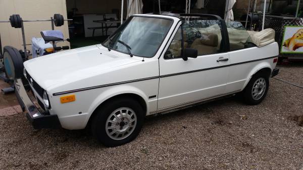 August 5, 2014One of the more underrated convertibles of the last 30-40 years, and in fact one of few convertibles available in the early 1980s, is finally escaping its made-for-cheerleaders stigma. The earlier cars, without all the heavy modernizing embellishments of the late 1980s and early 1990s, are actually pretty smart looking and are great for being able to hold 3 other friends (instead of the usual 1 in a roadster). Fitted with a later GTI powertrain, these could actually be fairly sporting and give an E30 3-series convertible a good run for its money. But perhaps that’s part of the problem right there – a 1988 BMW 325i convertible in decent condition is maybe double the price of a Rabbit convertible, but in fully-depreciated used car terms, that’s a couple grand for vastly more prestige, six-cylinder power, and whatever’s left of the famous BMW handling. Nonetheless, check out this 1982 VW Rabbit Convertible for sale for $1500 in Tucson, AZ.